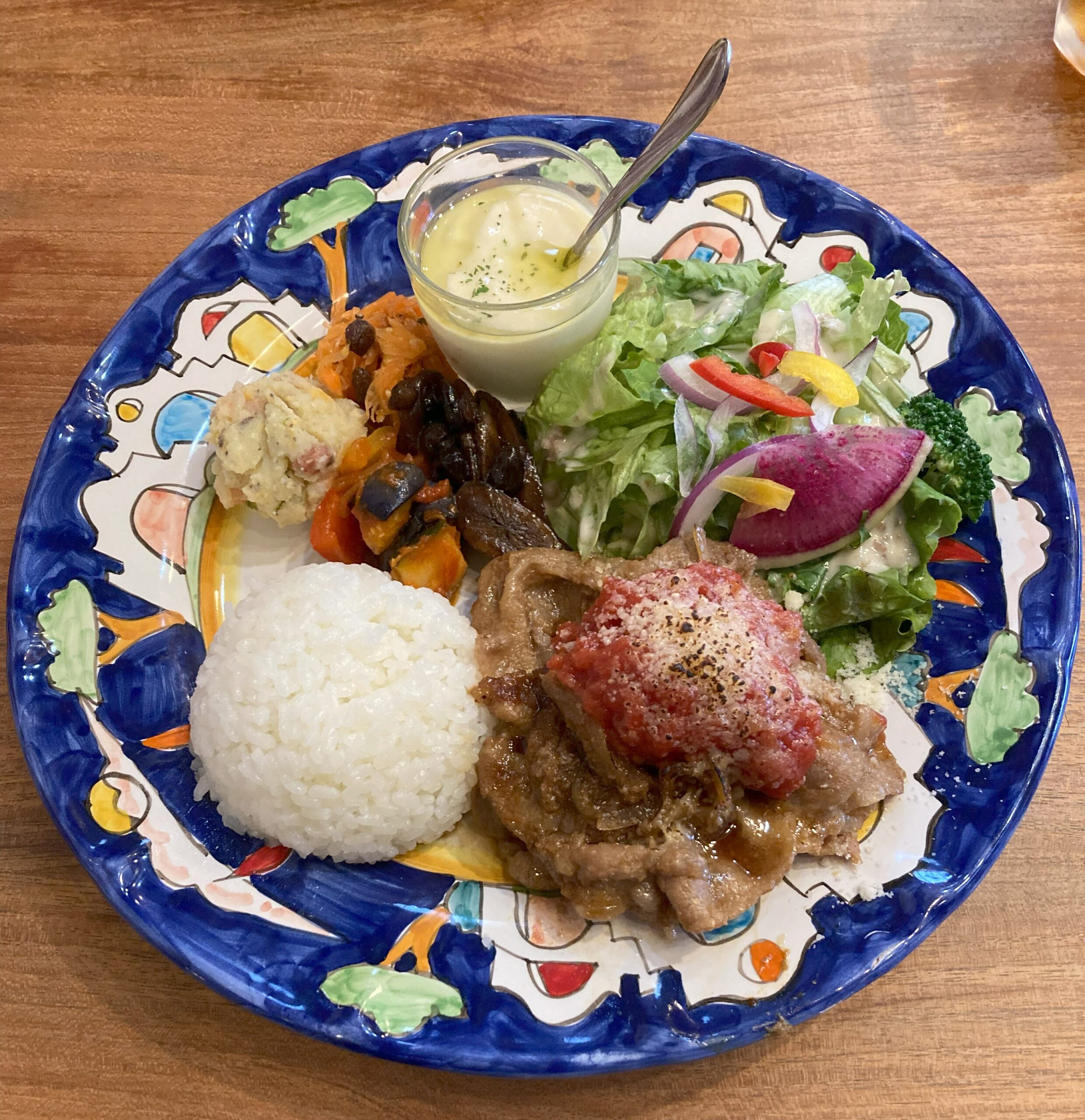可愛らしいお皿に盛り付けも彩りが良く、