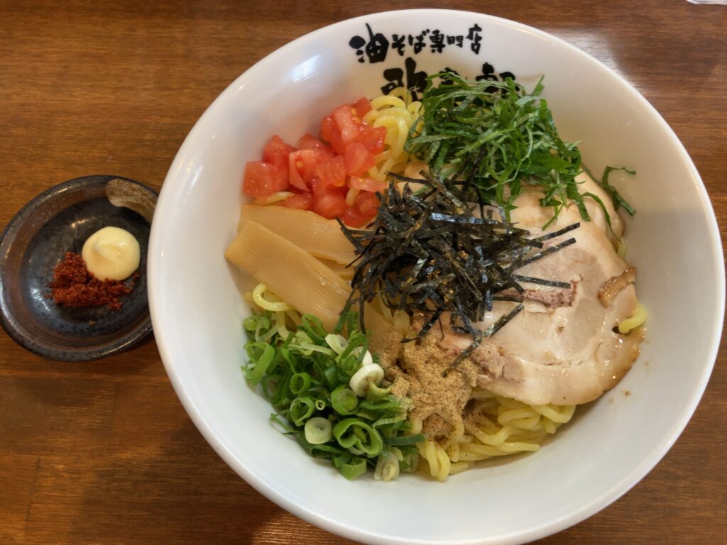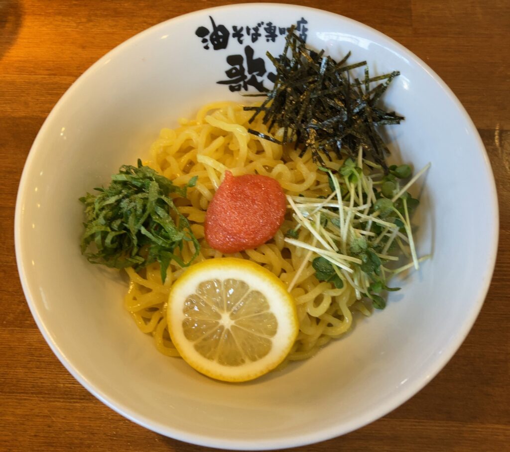 今日のグルメは歌志軒伊勢店の「油そば」です。