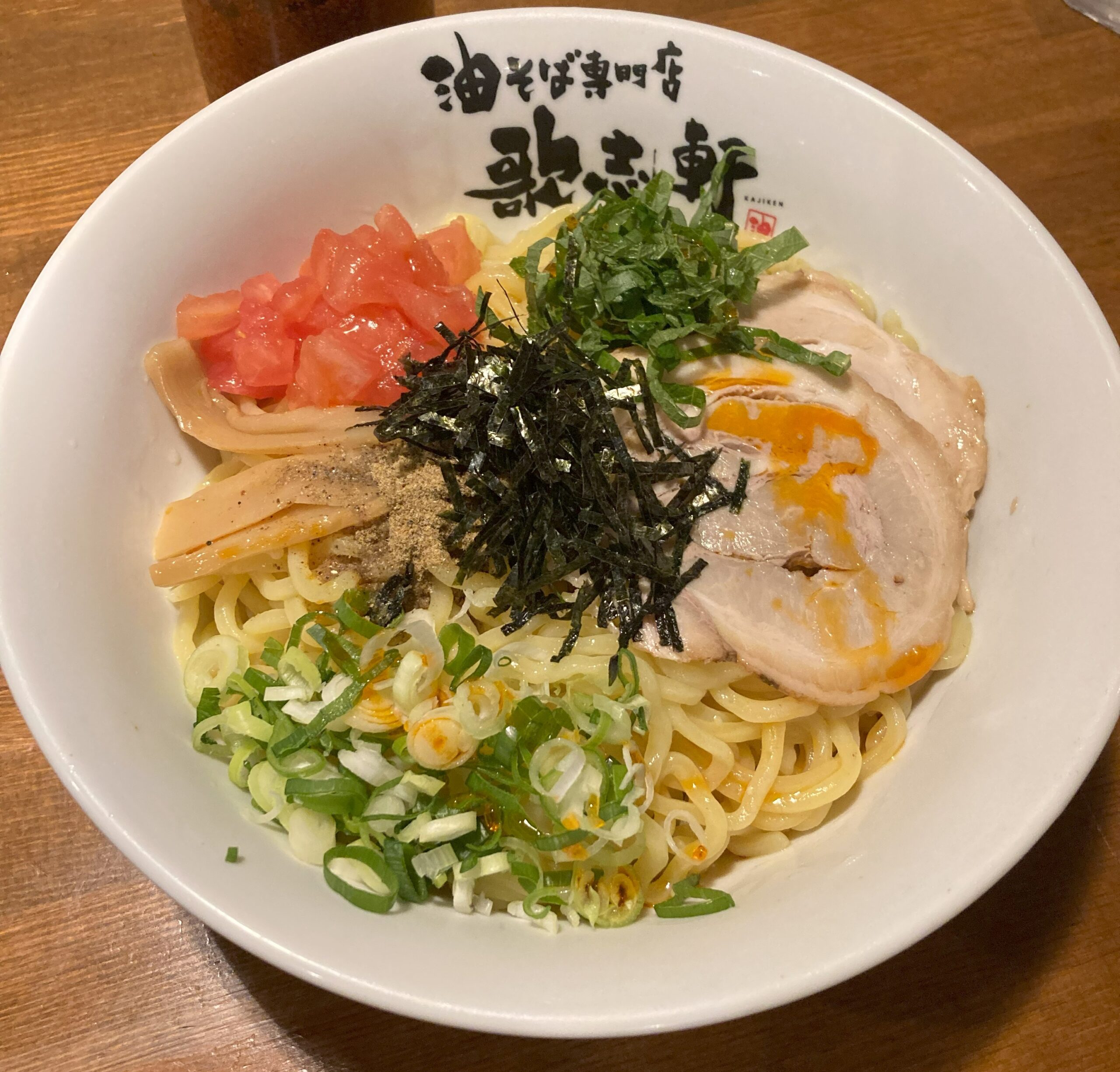 今日のグルメは歌志軒伊勢店の「油そば」です。