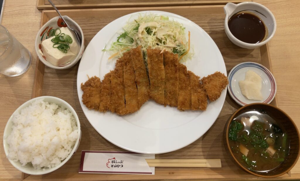 伊勢市小俣町の「旨家どんぐり」の「名物わらじとんかつ定食」です。